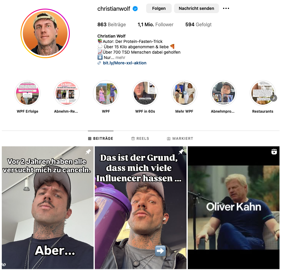 Abb. 1 Screenshot von Christian Wolfs Instagram-Profil @christianwolf (Wolf 2025) (Stand: 19.06.2025)